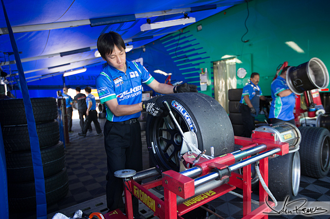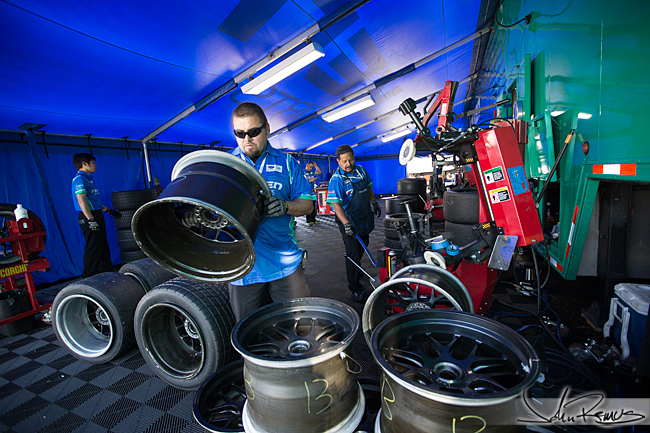 Meanwhile at the tire rig the guys were hard at work preparing wheels with fresh rubber for tomorrow